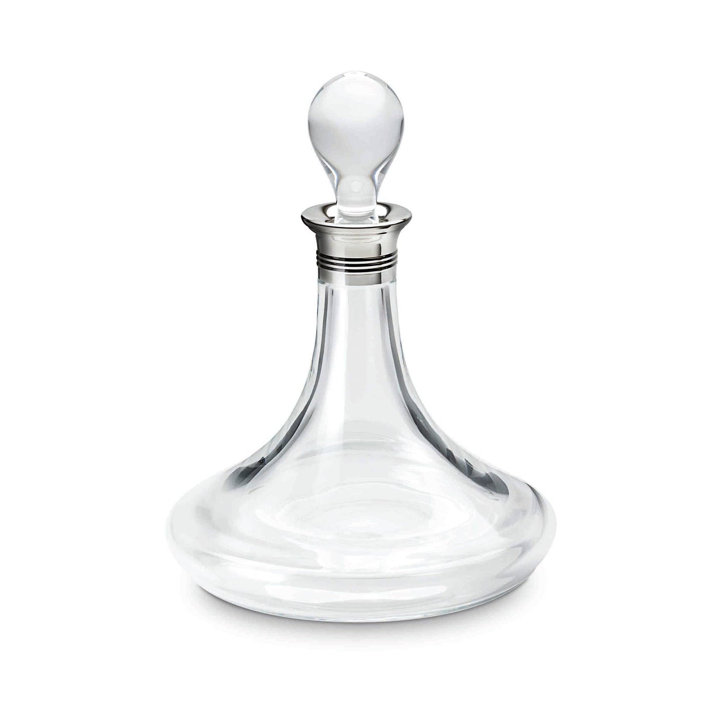 This classic ships decanter is made of 30% lead crystal & hallmarked sterling silver. Ideal for engraving on the silver collar, this stylish decanter makes a perfect gift for any occasion. The 3 embossed decorative ridges on the collar match with the other decanters in the Connoisseur range. With a capacity of 75ml the decanter is suitable for containing either wine or spirits and is an elegant and decorative piece to display in the home.
