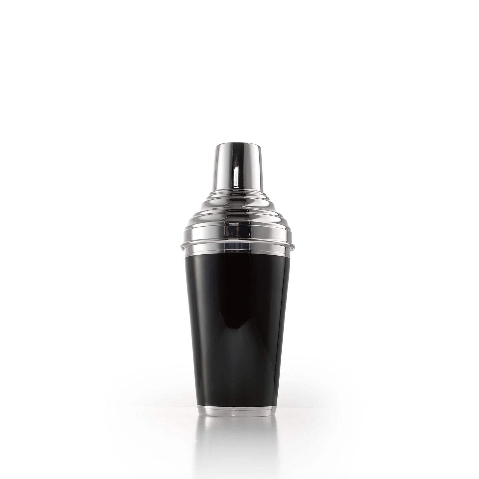 Elevate your mixology game with Asprey's Enamelled Cocktail Shaker. Handcrafted in the UK to the highest luxury standards, this sterling silver shaker has a sleek black enamel finish. Its three-part design includes a practical strainer, a sturdy base section, and a lid that doubles as a 50ml spirit measure. This shaker embodies Asprey's legacy of timeless elegance and functional design, offering both style and substance for your cocktail creations.