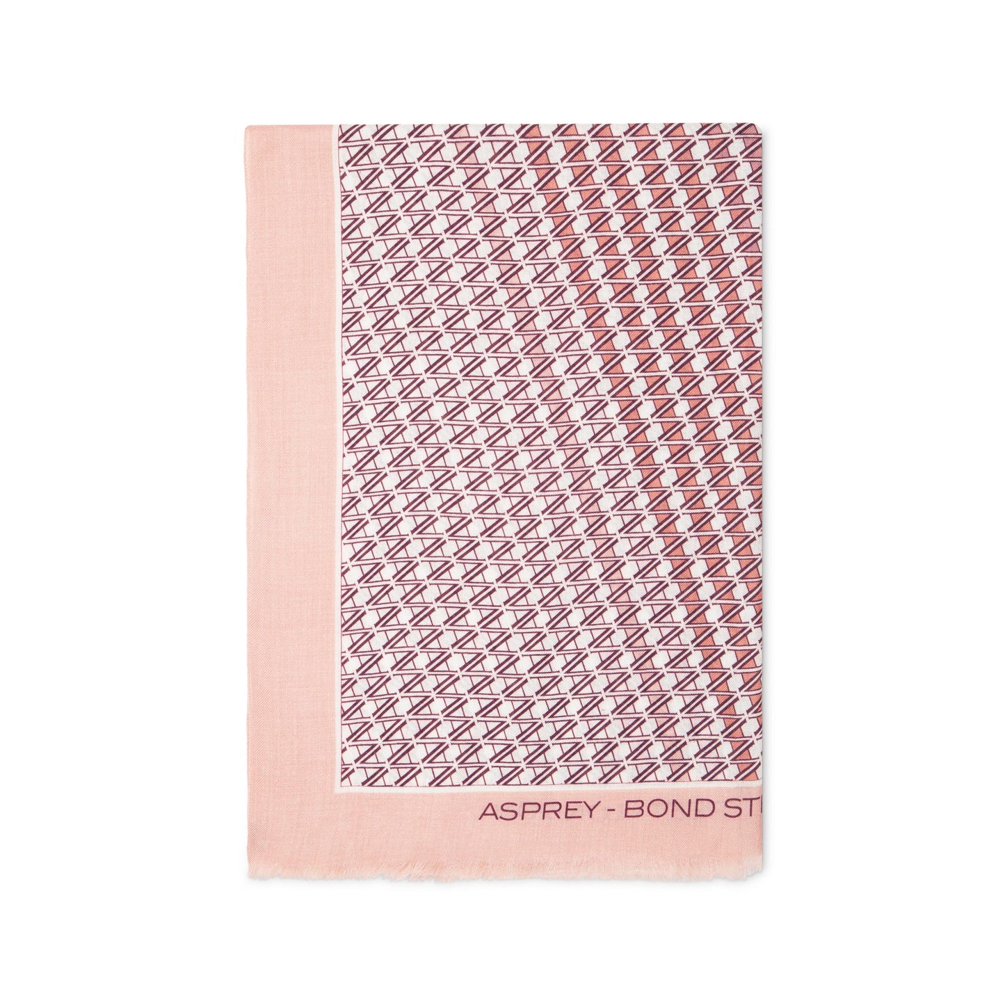 Introducing Asprey’s signature Geometric “A” Stole, a luxurious accessory from Asprey. Meticulously crafted with fine cashmere, this stole showcases an enchanting geometric design, exuding sophistication and elegance. The soft blush hue adds a touch of femininity to any outfit. Perfect for draping over the shoulders or wearing as an elegant wrap, this stole offers versatility and timeless charm. Elevate your style with this exquisite piece, as the flawless blend of artistry and opulence epitomizes the essence of Asprey's renowned craftsmanship. Experience the ultimate luxury with this Blush Cashmere Stole, a cherished addition to your wardrobe.