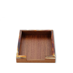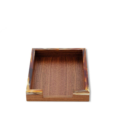 Designed in-house by Asprey, the Horn & Walnut Wood Letter Tray is a sophisticated desk accessory crafted from walnut veneer wood with matte horn detailing. The base is leather-lined and blind-embossed with the Asprey logo, offering a refined A4 format of 25 cm × 34 cm × 4.5 cm (10″ × 13.5″ × 2″). This elegant piece blends material richness and functionality, making it ideal for the distinguished workspace.