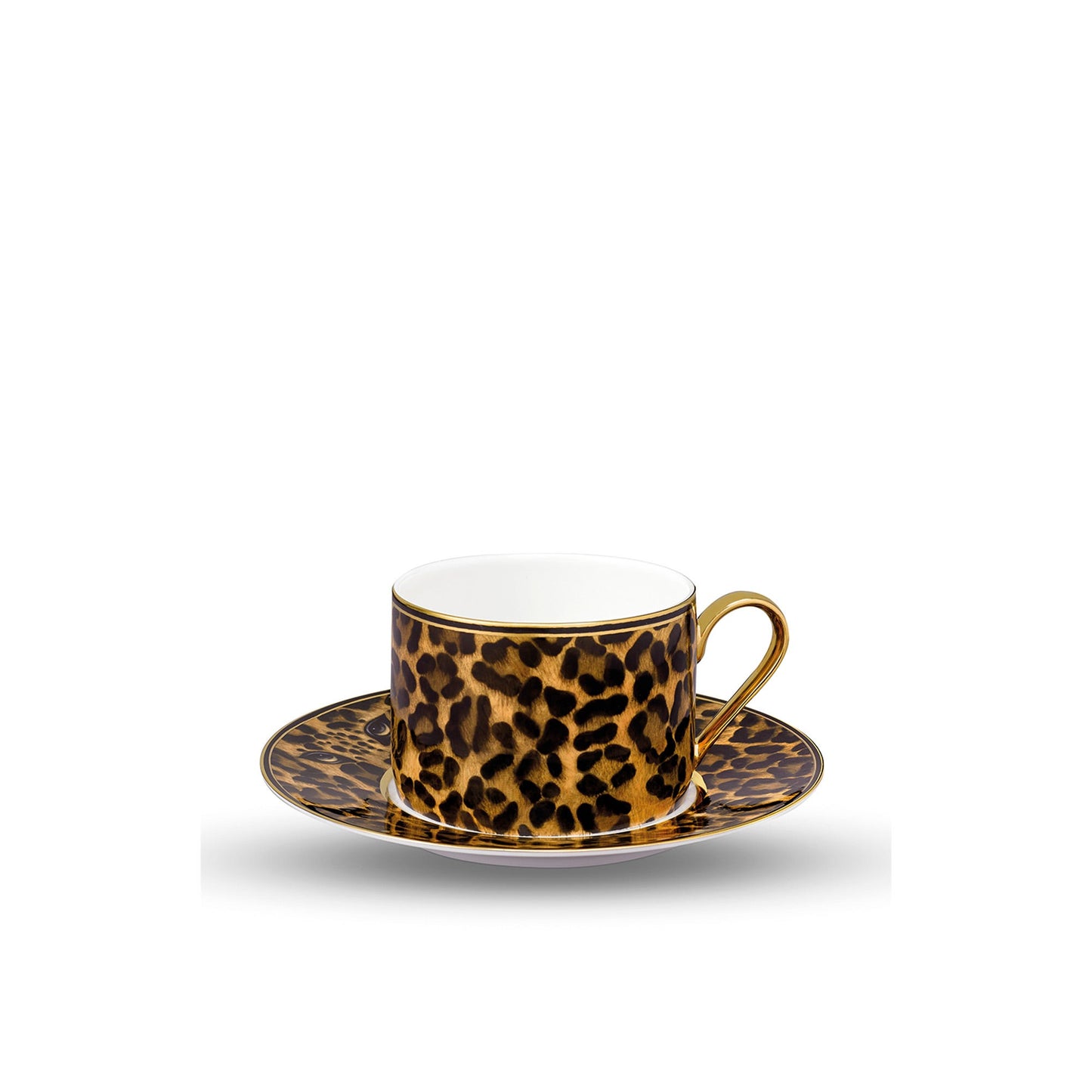 Elevate your tea ritual with the Asprey Leopard Tea Cup & Saucer—a fusion of artistry and functionality. Crafted from fine bone china, this collection showcases a hand-painted leopard pattern. It features hidden eyes, adding a playful touch, a hand painted liquid 24 carat gold handle, hand painted liquid 24 carat gold detailing in the saucer and hand finished yellow gold and black trims.