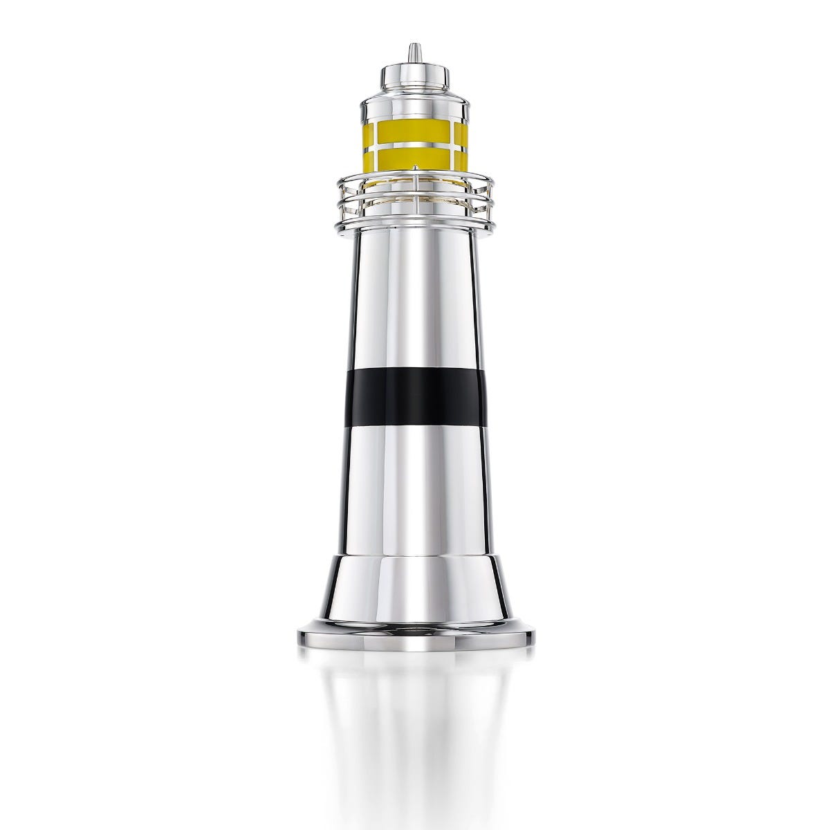 Indulge in the epitome of luxury barware with Asprey's Lighthouse Cocktail Shaker. Crafted in the Asprey workshops, this striking shaker exemplifies the brand's commitment to excellence. Yellow and black enamel harmoniously blends with sterling silver, creating a captivating focal point for connoisseurs.
