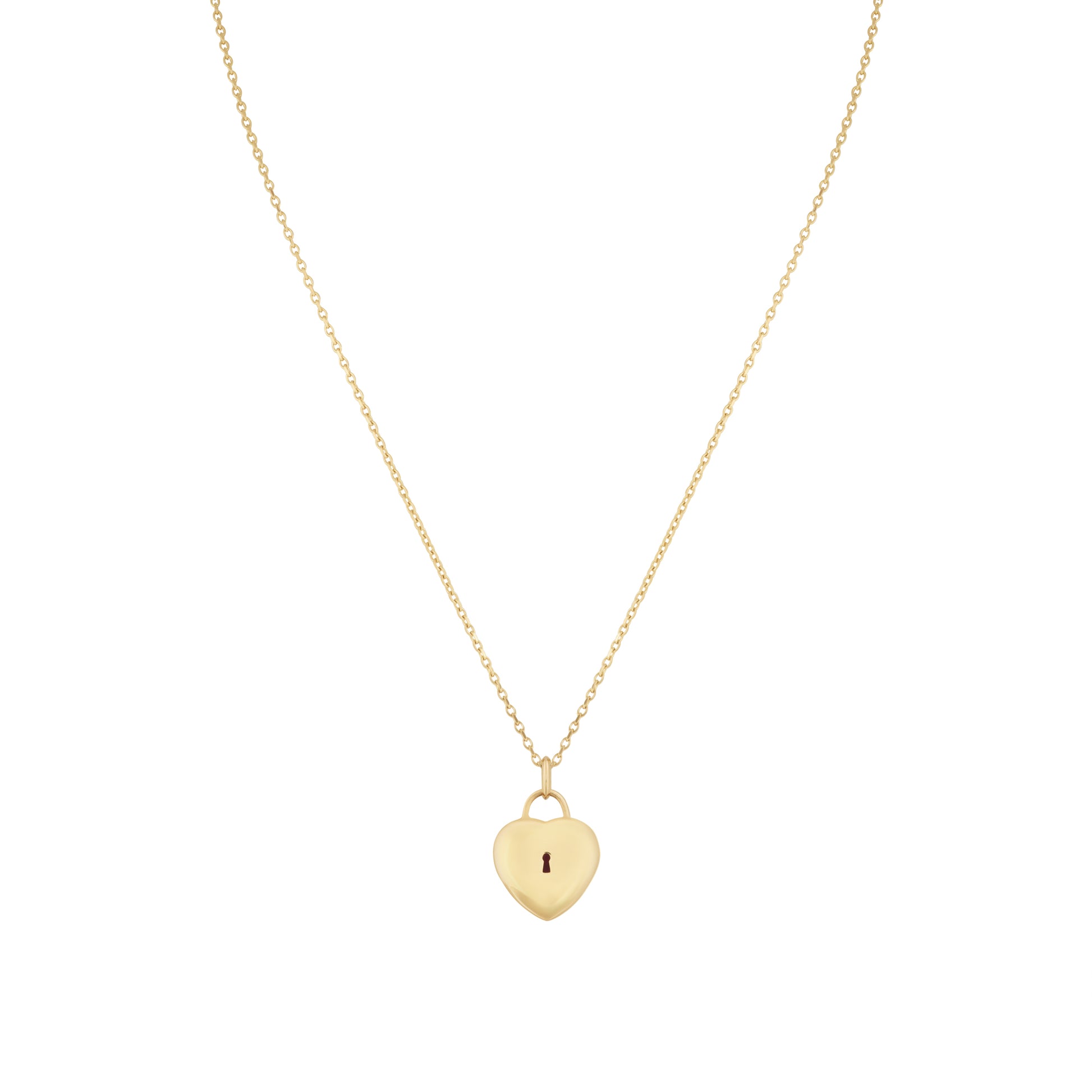 Crafted in hallmarked 18ct yellow gold, this heart-shaped padlock pendant features a rich 1.8 ct rubellite gemstone framed by shimmering diamonds. The 1.6 cm (width) by 2 cm (height) pendant hangs on a 23 cm chain and fastens with an ‘A’ clasp.