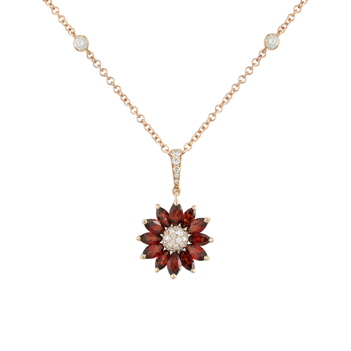 Daisy Small Pendant in 18ct Rose Gold with Garnet and Diamonds