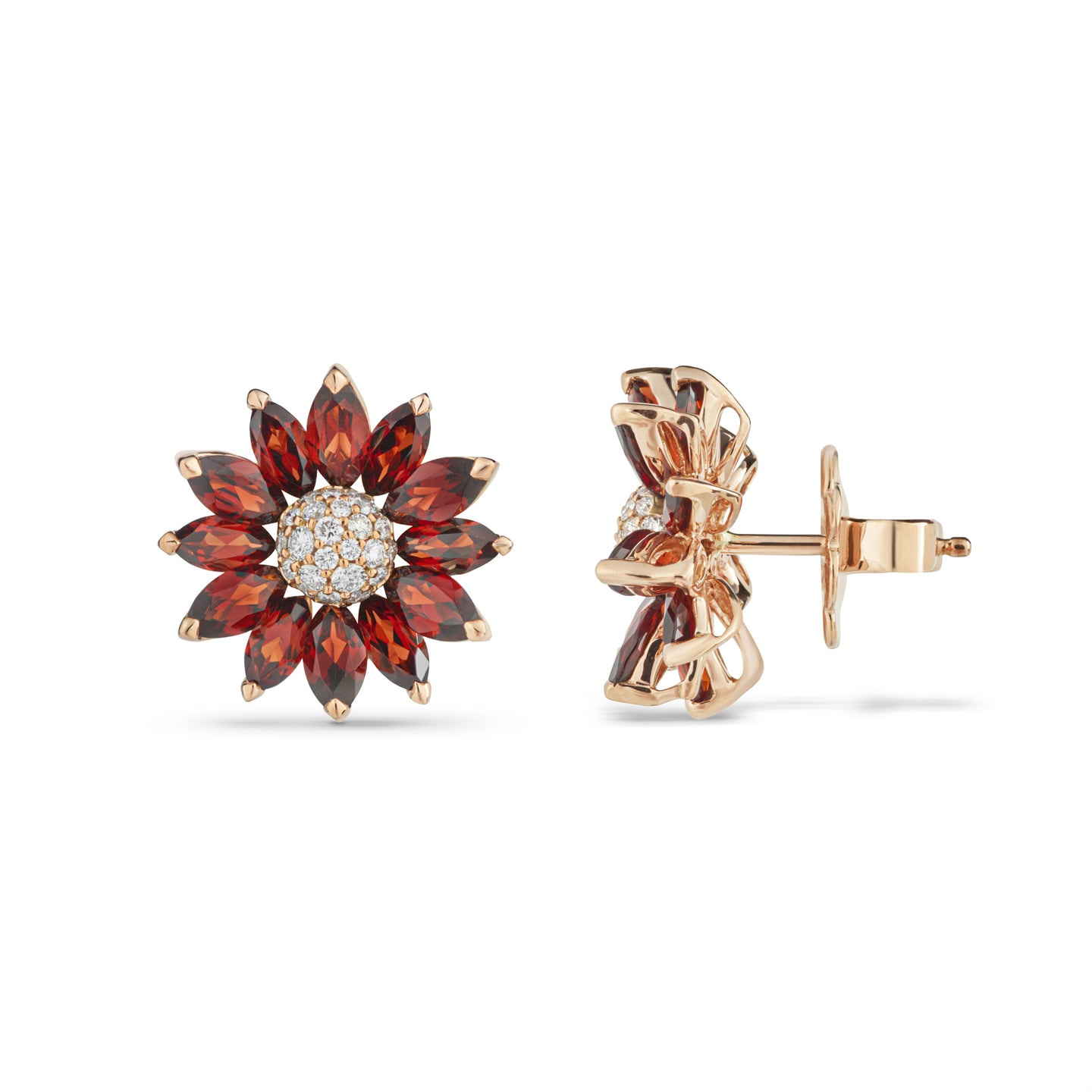 Daisy Small Earrings in 18ct Rose Gold with Garnet and Diamonds