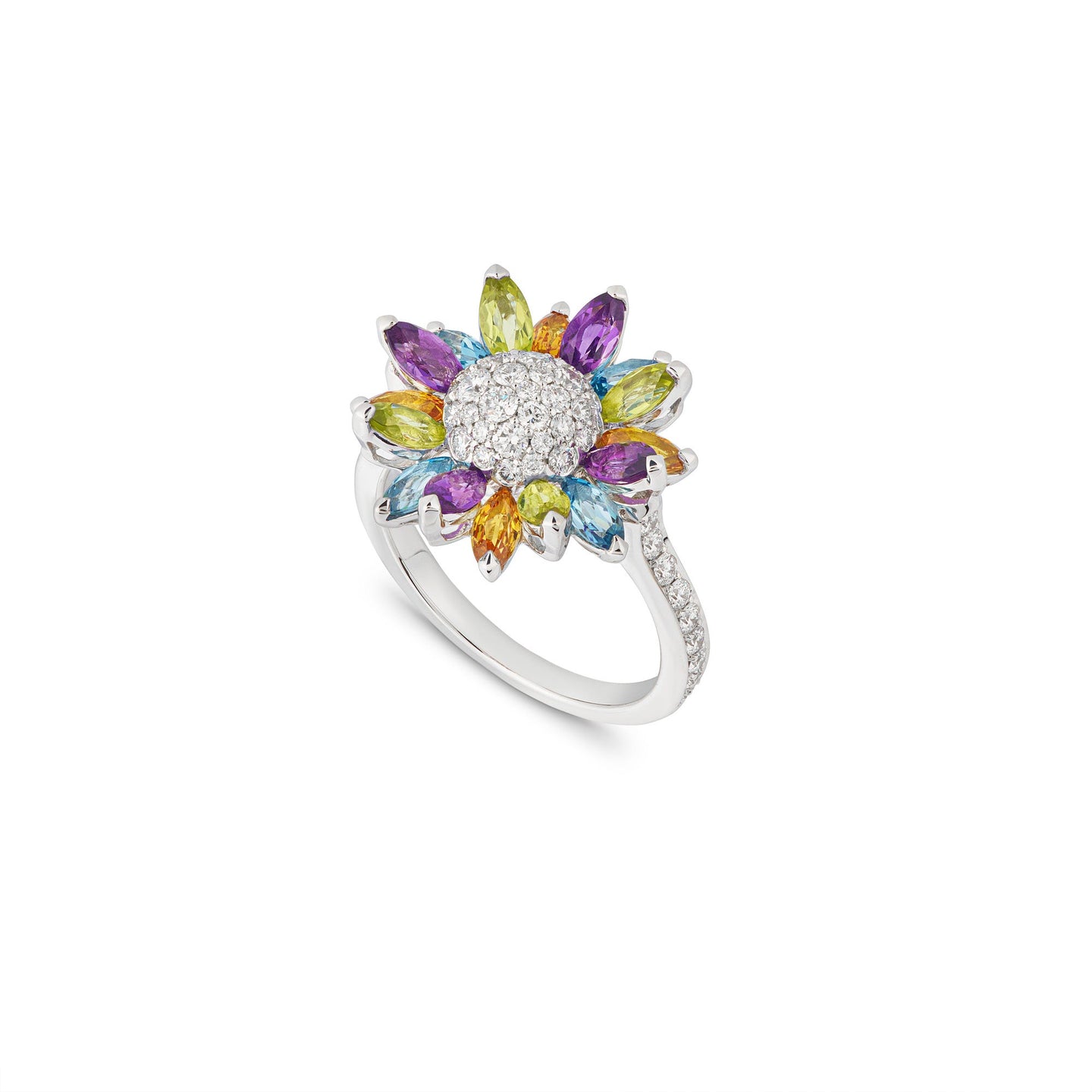 Daisy Medium Ring in 18ct White Gold with Multicoloured Gemstones