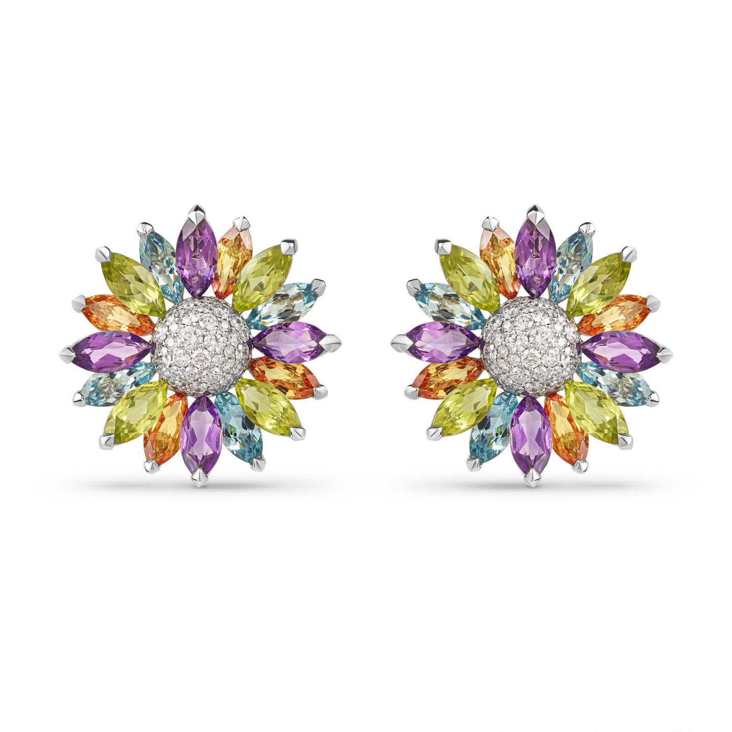 Daisy Small Earrings in 18ct White Gold with Multicoloured Gemstones