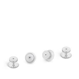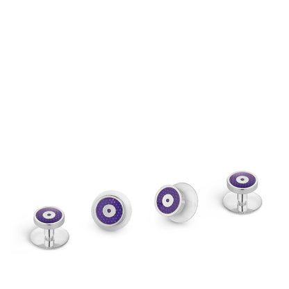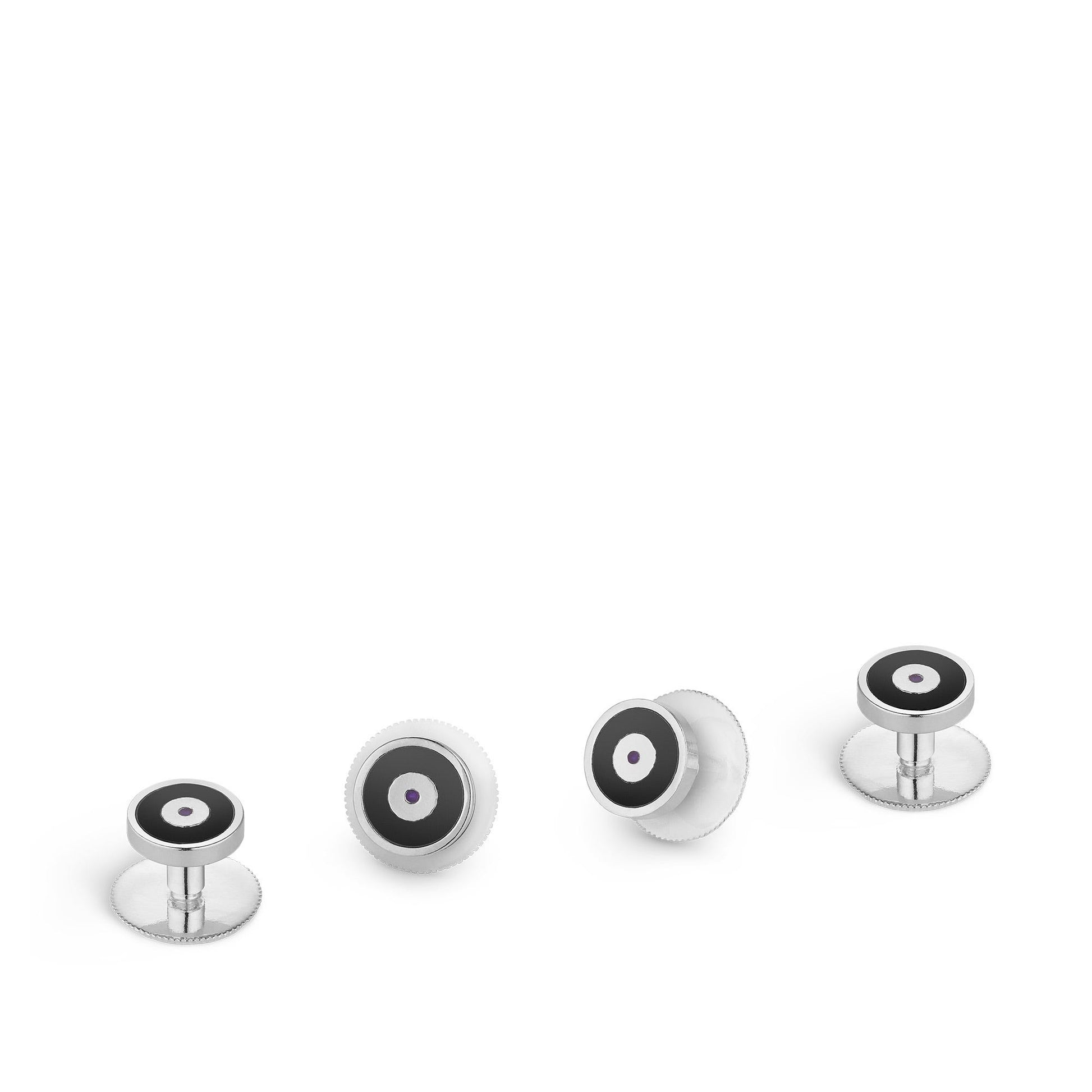 Luxury meets understated elegance in these 167 dress studs, crafted in high-grade sterling silver with black enamel detailing. Presented as a refined set of four, each stud features a screw-back design for secure wear and signature Asprey quality finish. Ideal for diplomatic dinners, black-tie events or elevating a formal shirt, these studs bring a subtle yet distinguished colour accent to traditional tailoring.