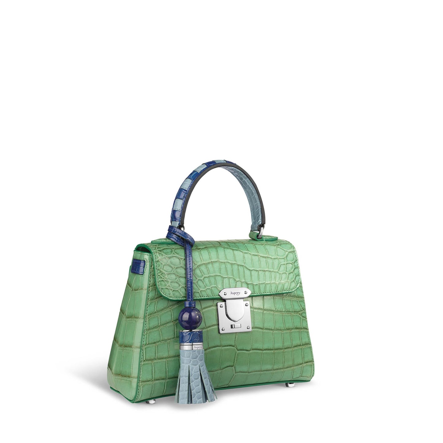 The 167 mini features a combination of jade, sky blue and malibu coloured crocodile, adding an eye-catching touch to any outfit. The interior is lined with kid suede, ensuring a luxurious feel every time it is carried from day to evening.