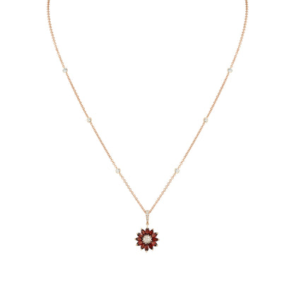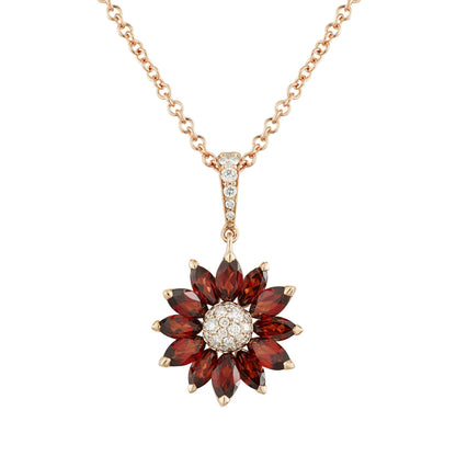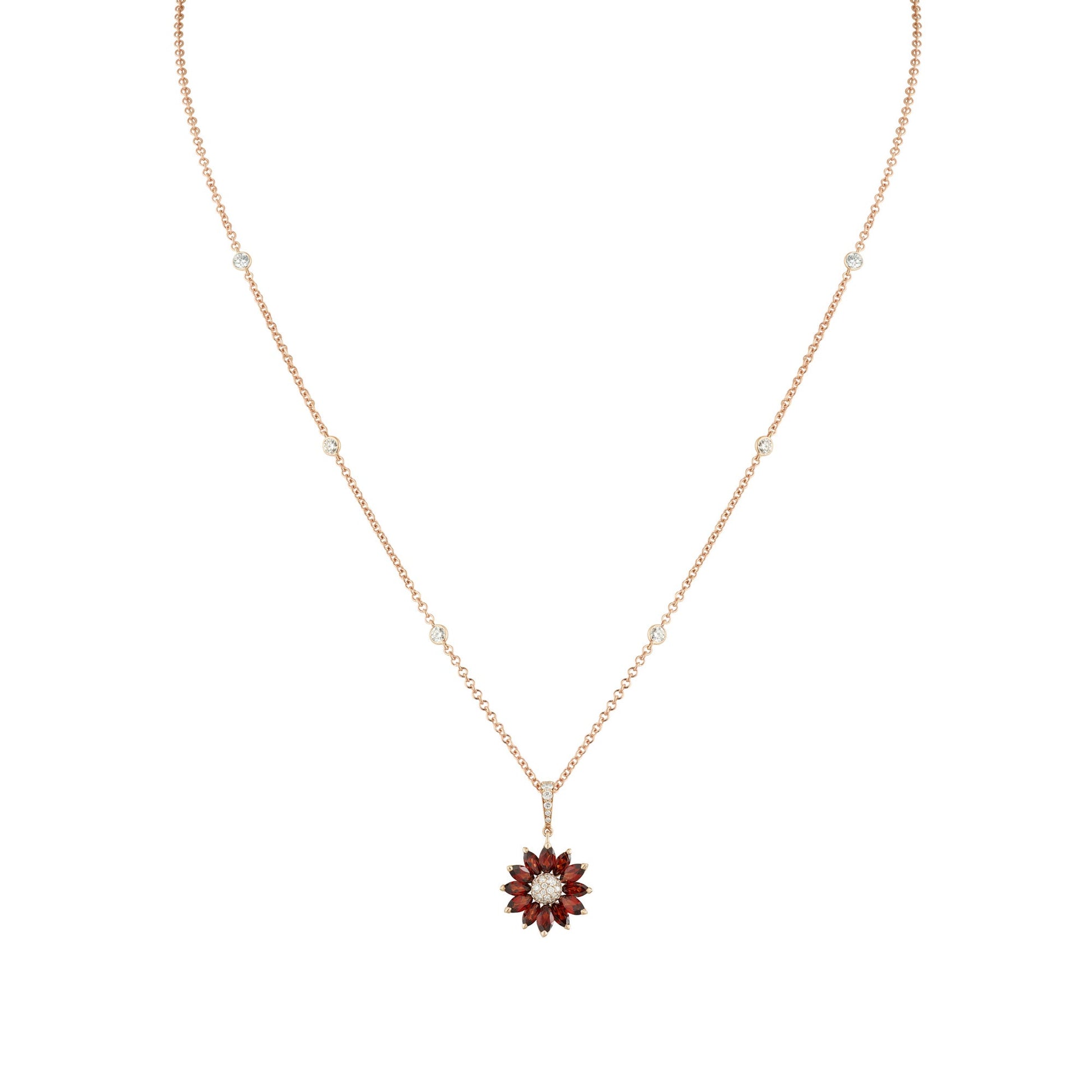 Daisy Small Pendant in 18ct Rose Gold with Garnet and Diamonds