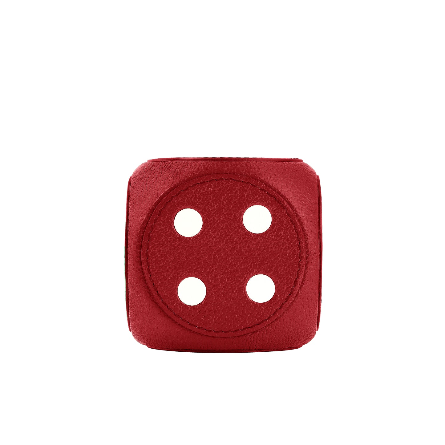 Wrapped in luxurious black pebble grain leather, the oversized dice design features white leather inlaid pips and carefully applied leather discs on each face, showcasing meticulous attention to detail.