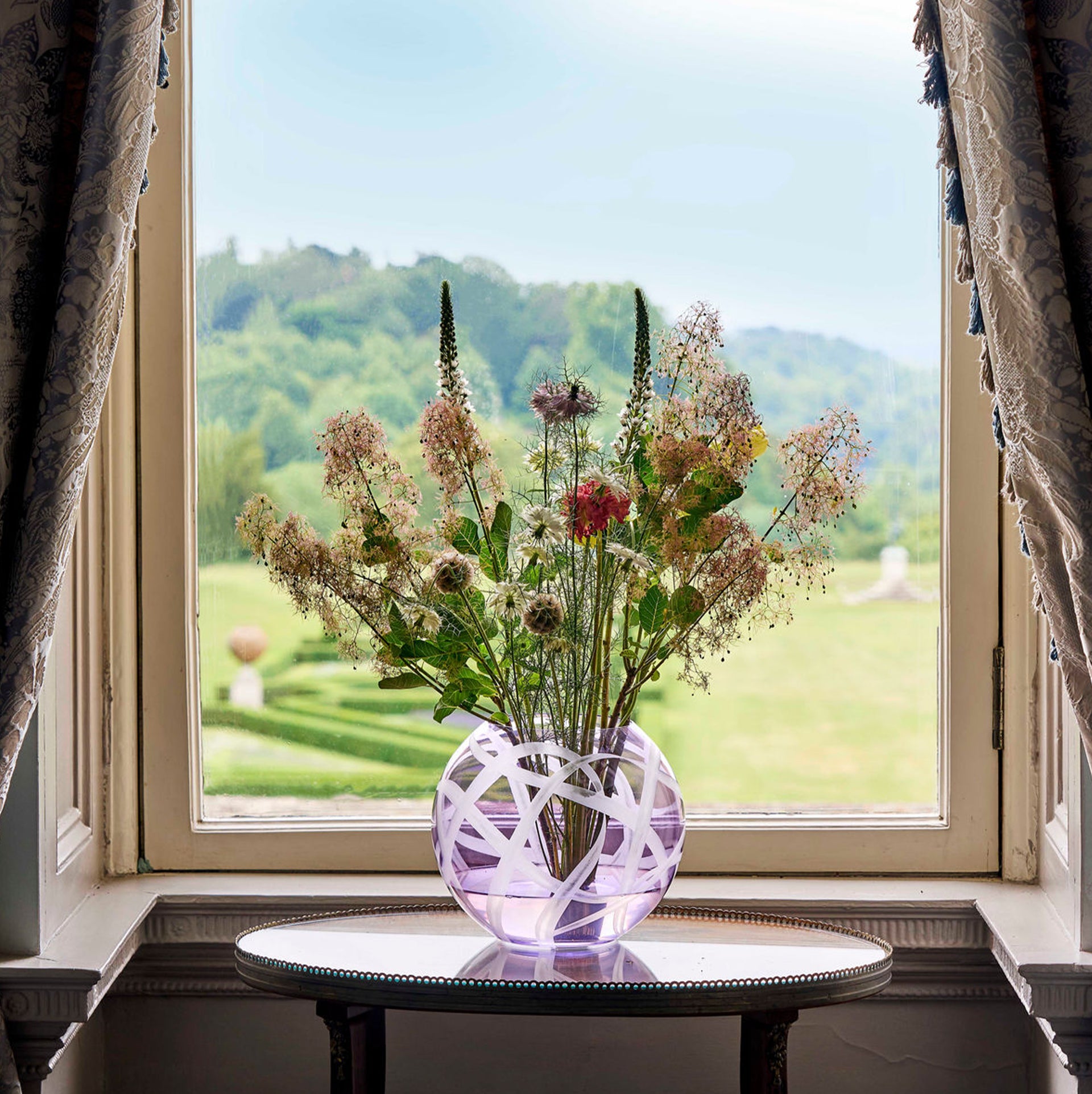 Refined and expressive in a soft lilac hue, this Extra Large Ribbon Vase from Asprey is crafted from mouth-blown, lead-free crystal by master glassmakers in Bohemia. A flowing ribbon motif is hand-engraved using the demanding diamond-wheel cutter technique, creating texture, depth and luminous movement across the surface.