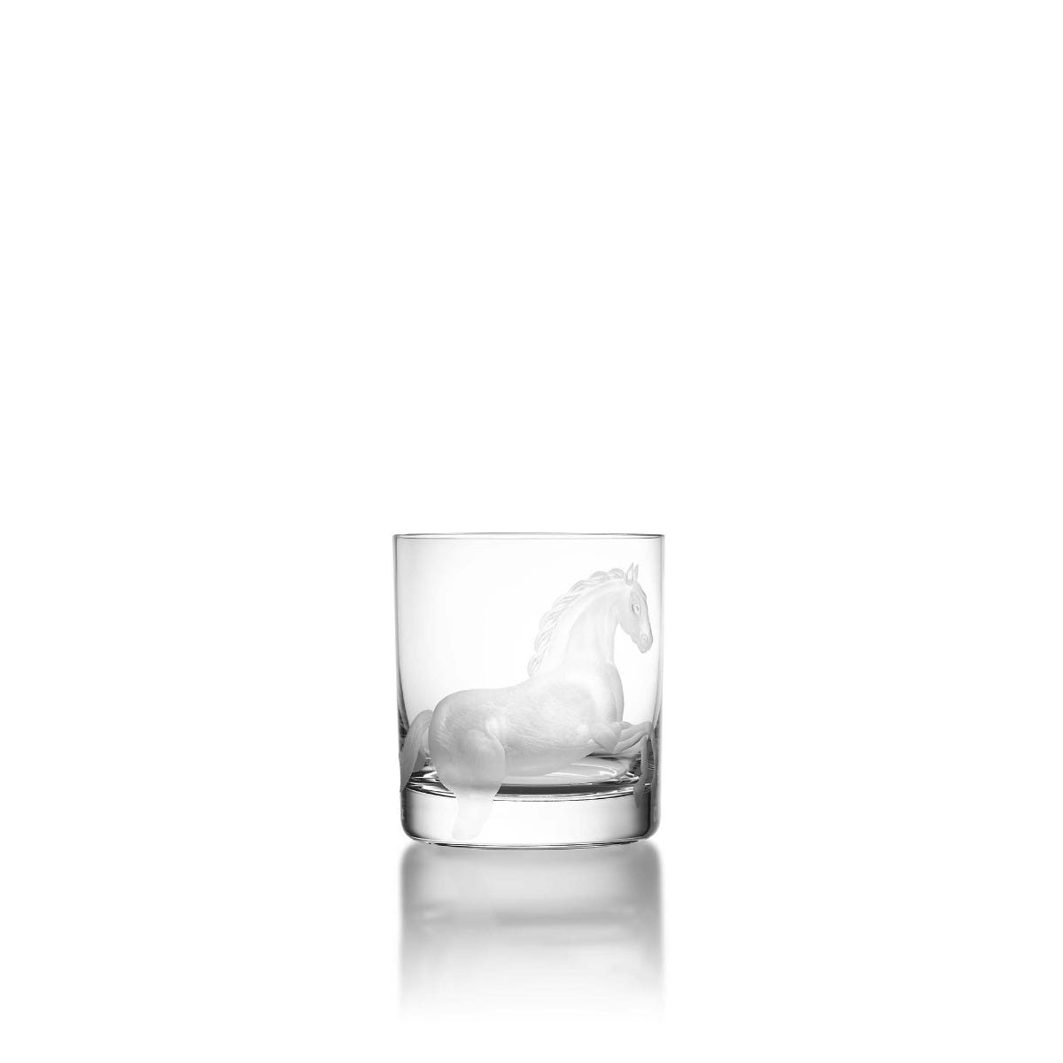 Mouth-blown, lead-free crystal DOF tumbler with a hand engraved horse design using a traditional diamond wheel cutter