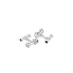 Elevate your style with our King & Queen Cufflinks, a true embodiment of luxury and sophistication. These cufflinks feature an intricate King and Queen chess pieces inspired design, expertly crafted from hallmarked Sterling Silver, ensuring enduring quality and timeless appeal. What sets them apart is our signature purple coloured enamel finish, adding a touch of regal charm to these accessories.