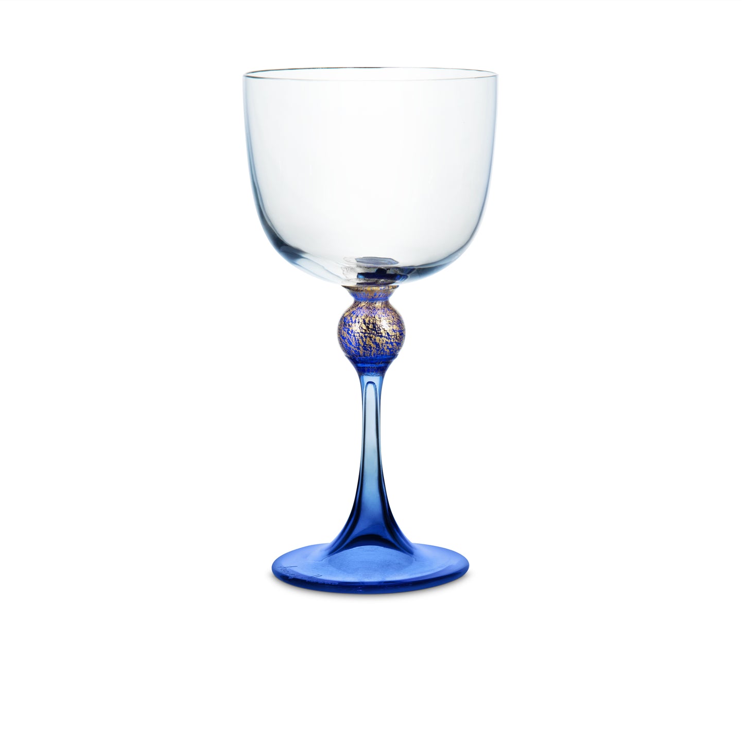 Expertly crafted by the island of Murano’s master glass artisans, the Murano red wine glass features refined accents of gold leaf and elegantly designed blue stem. Each piece of stemware is hand engraved on the base with the Asprey name by the artisan. The thinness of the glass, together with the inherent strength of each piece ensures an enhanced drinking experience. They are certain to elevate the decoration of your dining table and leave a lasting impression on your guests. Each piece is unique and may vary in appearance due to the hand-blown nature of the glass.