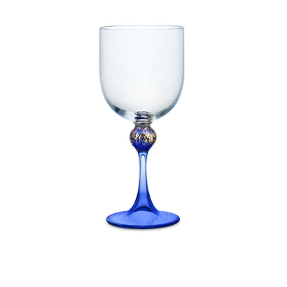 Expertly crafted by the island of Murano’s master glass artisans, the Murano white wine glass features refined accents of gold leaf and elegantly designed blue stem. Each piece of stemware is hand engraved on the base with the Asprey name by the artisan. The thinness of the glass, together with the inherent strength of each piece ensures an enhanced drinking experience. They are certain to elevate the decoration of your dining table and leave a lasting impression on your guests. Each piece is unique and may vary in appearance due to the hand-blown nature of the glass.