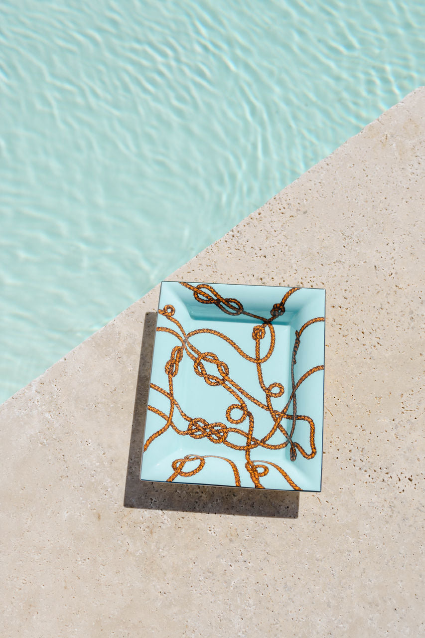 Fine bone china vide poche with hand painted nautical design, hand finished with platinum trims.