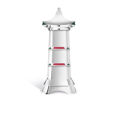 Echoing architectural marvels, the Pagoda shaker stands as a testament to meticulous design and execution. Intricate engravings and enamelling grace each storey, culminating in a gracefully angled detachable roof cover. With its main body resting securely in the base, it transforms into a functional shaker, with a removable lid, cap, and strainer.