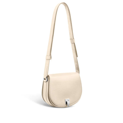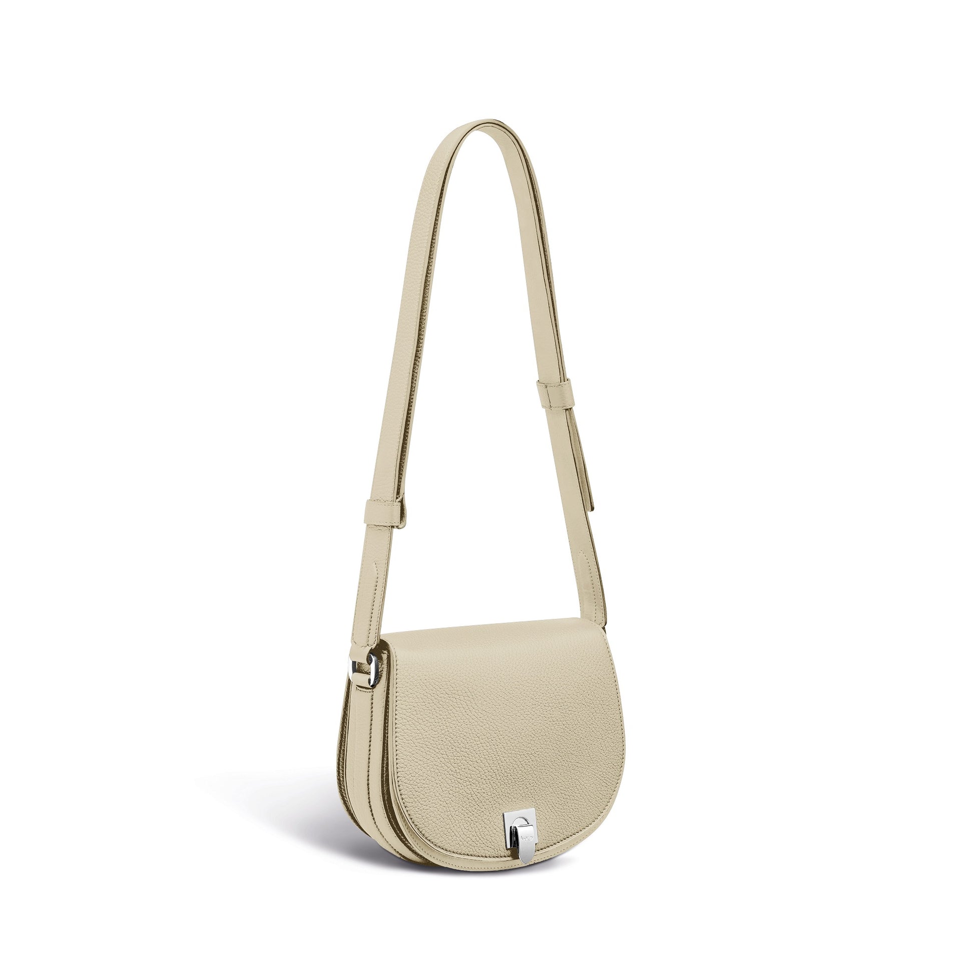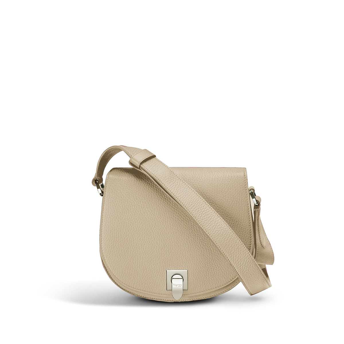 The Polo Handbag features an oversized flap over with a twist reinterpretation of the iconic Asprey claw and window closure, adding to its allure. The shoulder strap, detailed with saddlery elements, allows for adjustable shoulder or cross-body wear.