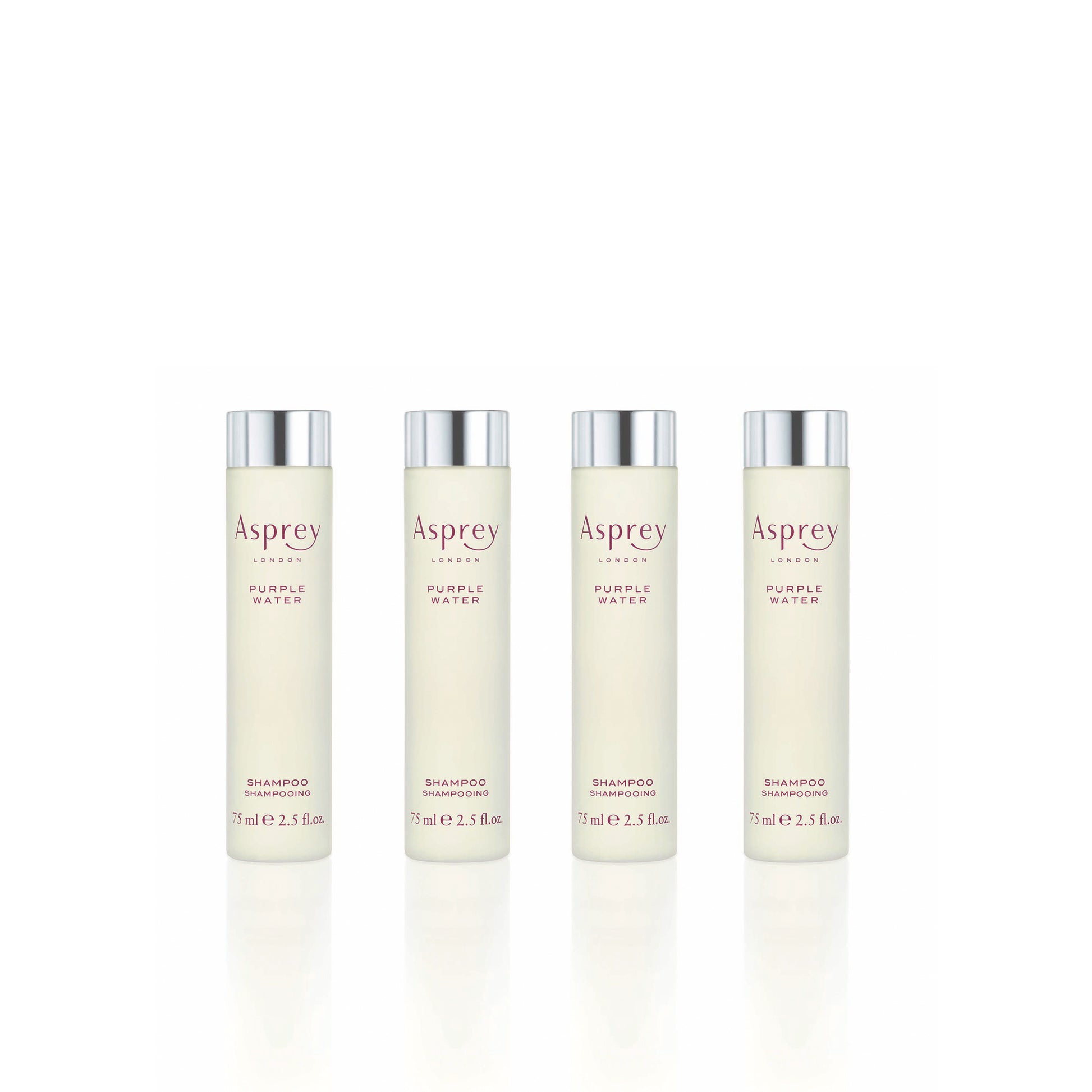 Introducing Asprey's exquisite Purple Water Shampoo in a mini 75ml size – the epitome of luxury hair care.