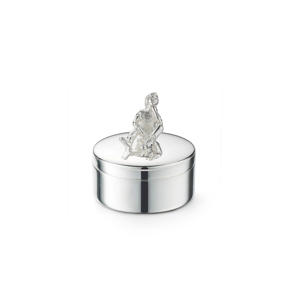 Exclusively crafted to the highest standards, this hallmarked sterling silver box is the perfect keepsake for precious baby teeth. The charming boy dressed as a tin man on the lid adds a whimsical touch to this timeless piece. Asprey's dedication to luxury and quality is apparent in every detail of this tooth box.