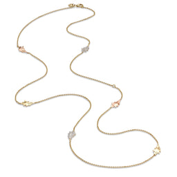 Lifted from Asprey’s enchanting Woodland collection, this Oak Leaf necklace is peppered with 18ct yellow and rose-gold leaves for a striking two-tone effect. Two charms are hand-inlaid with 0.30ct of sparkling pavé-set diamonds. For varied styling, the fine chain can be adjusted to a shorter length.