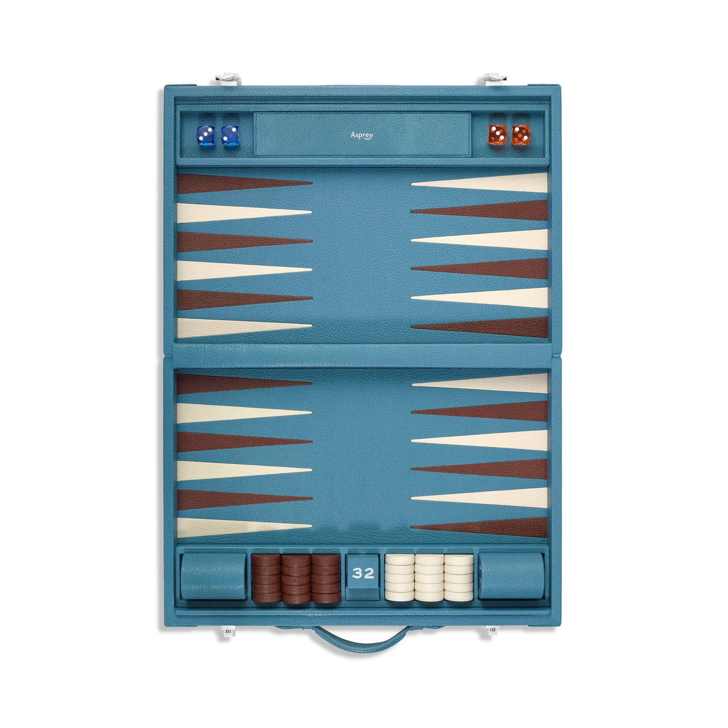 Hanover Small Backgammon in Pebble Grain Leather, Aeroplane