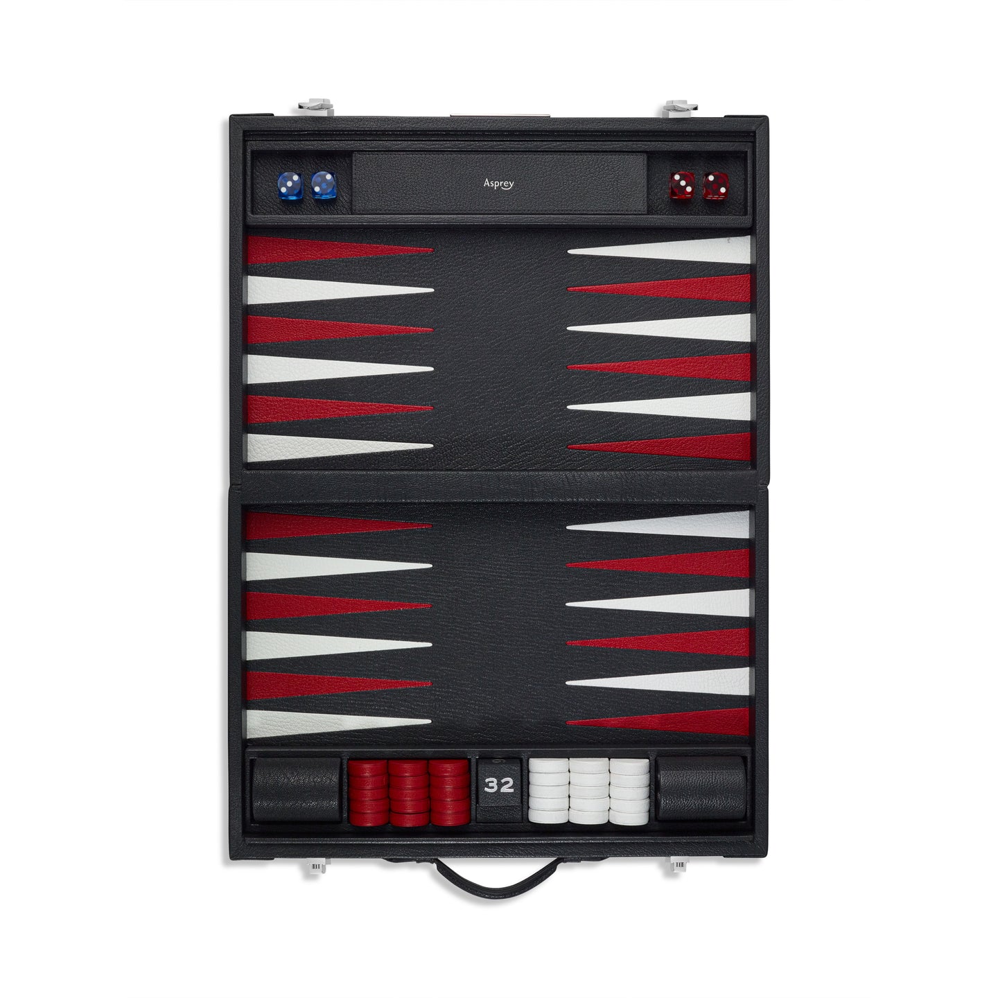 Hanover Small Backgammon in Pebble Grain Leather, Rocket