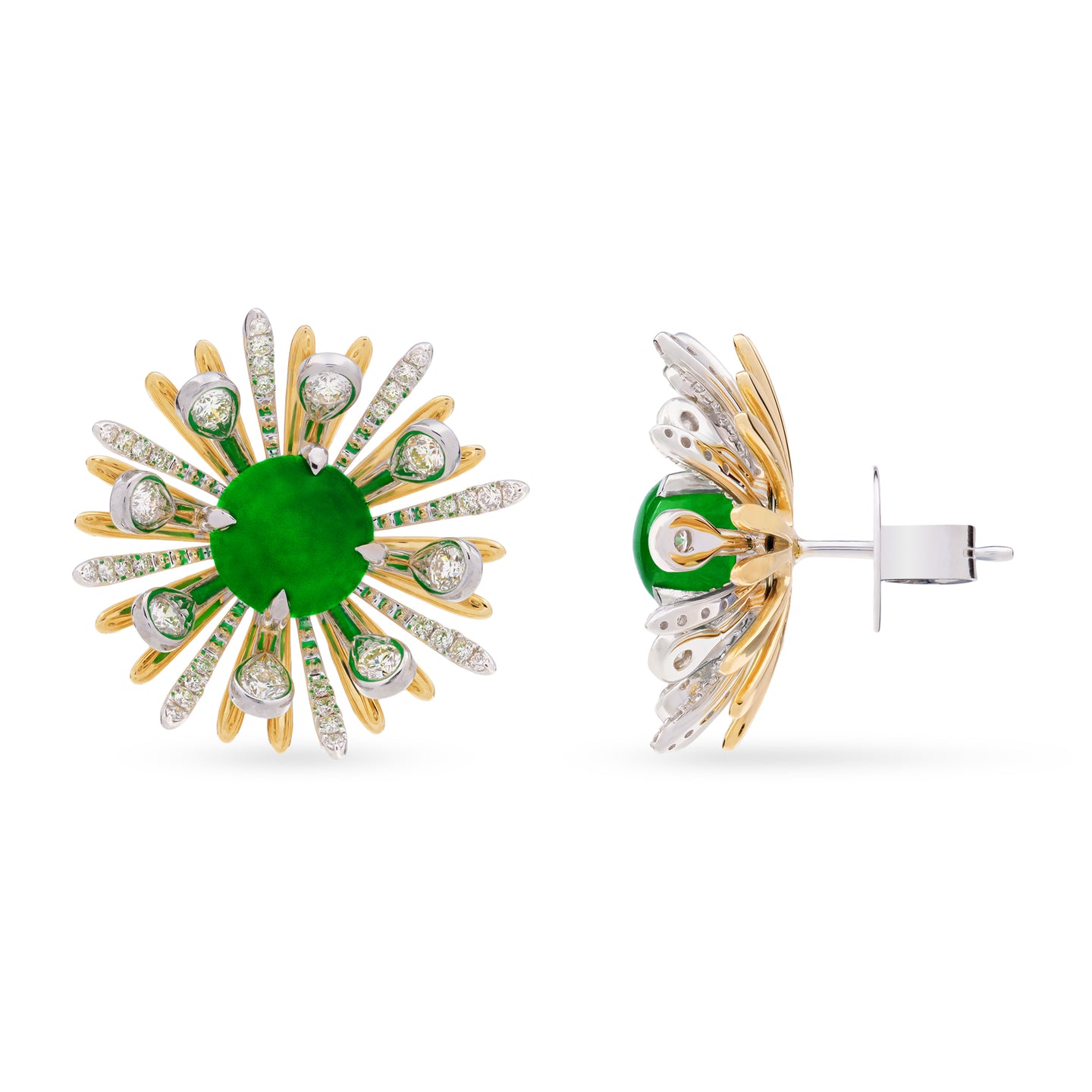 Imperial Jadeite Allium Earrings in 18ct White and Yellow Gold and Diamonds
