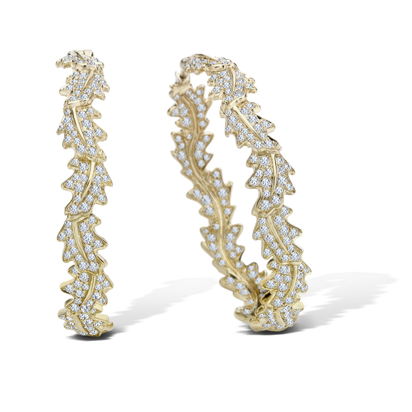 アスプレイのウッドランド ジュエリーは、英国の森からインスパイアされたデザインです。各作品は18金、エナメル、パヴェダイヤモンドで手作業で制作され、オークの葉、ドングリ、キノコなどのモチーフが施されています。」