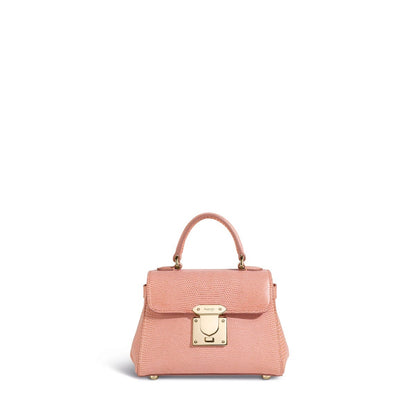 167 マイクロ ミニは、ホワイトのハイライトを備えた繊細なピンクの色合いのトカゲの外装が特徴で、どんな服装にも洗練された要素を加えます。内側にはキッドスエードを使用し、持つたびに高級感を感じさせます。