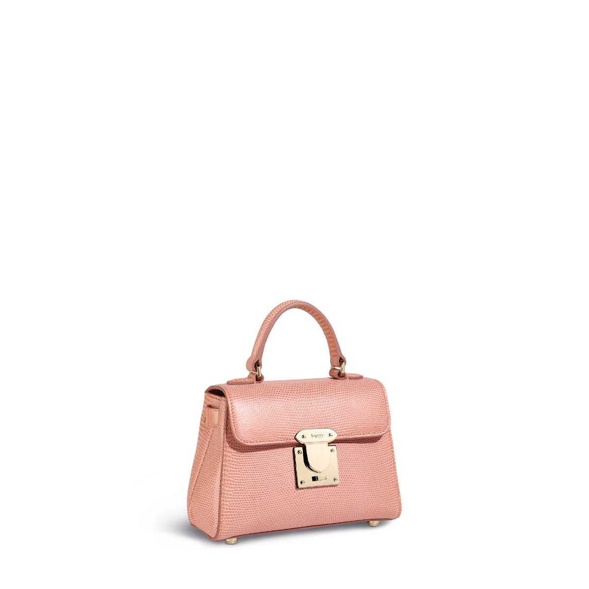 167 コレクションの一部であるトカゲのマイクロ ミニは、あらゆる個人の必需品です。すべての Asprey 製品と同様に、このハンドバッグも細部に細心の注意を払って作成されており、その結果、高級ヨットの構造からインスピレーションを得た洗練されたプロファイルとエレガントな台形の形状が実現しています。