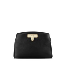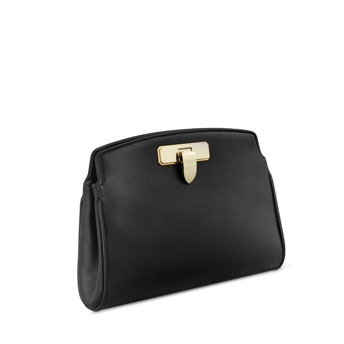 Asprey 1781 ブラック ラムスキン クラッチ ハンドバッグは、贅沢なブラック ラムスキンで作られており、Asprey の創業年と永続的な英国の伝統を記念する 1781 コレクションに属しています。