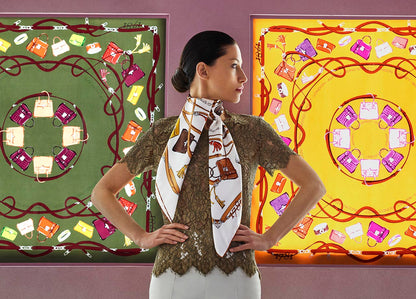 イタリアで巧みに作られた、ブルーベリーの魅惑的な色合いの 1781 シルク ツイル スカーフの芸術性をご覧ください。当社の最愛の Asprey 作品の魅力的なイラストがスカーフを飾り、ハンドバッグ、ポシェット、ボタンカフス、魅力的な色とパターンのタッセル チャーム フォブが特徴です。熟練した手によって丁寧に巻き上げて縫製された裾は、卓越した職人技を反映しています。 Asprey の汎用性の高いシルク スカーフは、首に巻いたり、ヘッドスカーフ、ウエストバンド、さらにはシックなトップスとしてなど、さまざまな方法でスタイリングできます。この絶妙なブルーベリー色の傑作でファッション表現を高め、時代を超えたエレガンスを醸し出し、あらゆるアンサンブルに洗練のタッチを加えます。