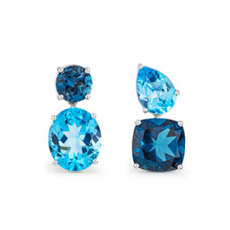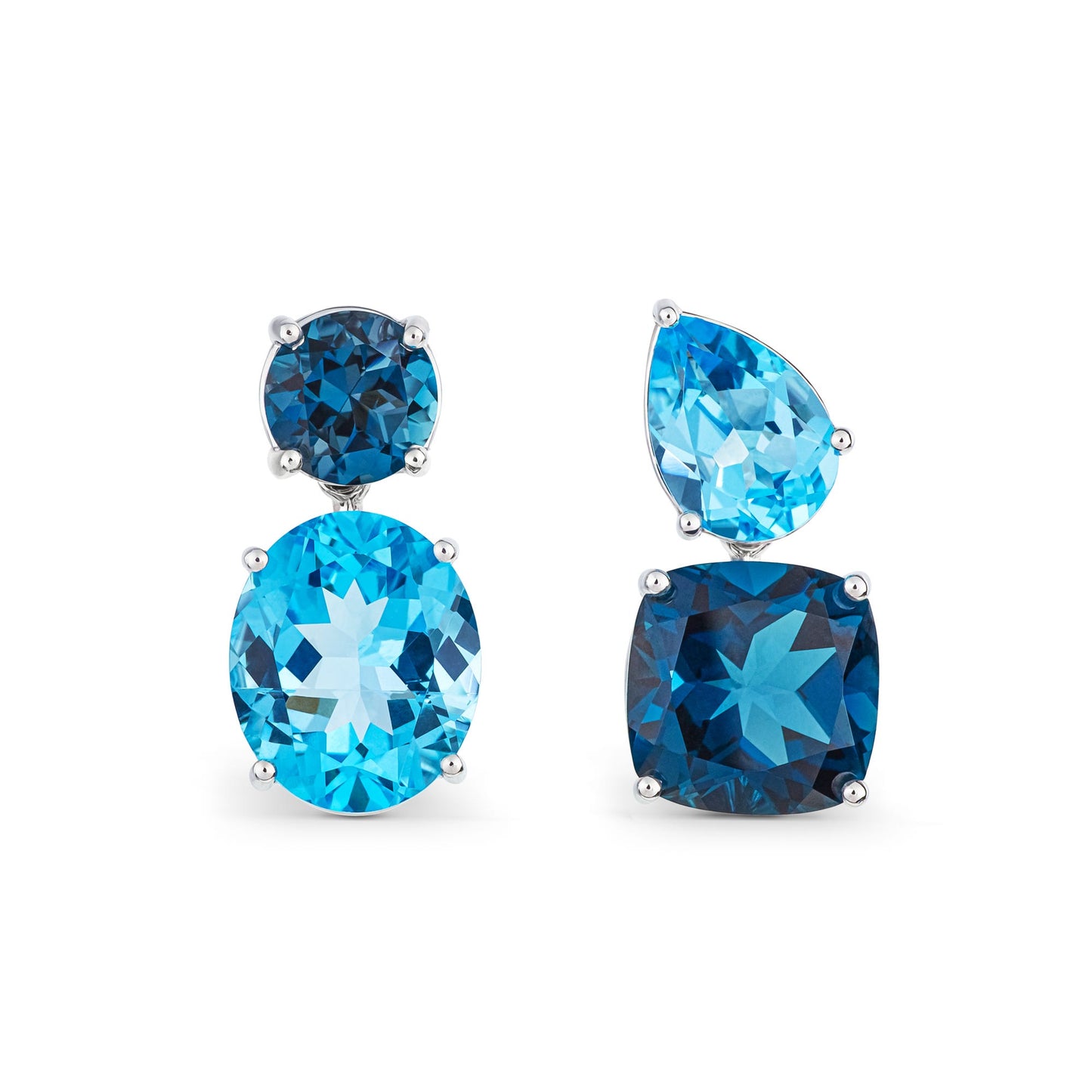 Asprey の Blue Chaos イヤリングの並外れた美しさに魅了される準備をしてください。精巧なディテールで作られたこれらの卓越したイヤリングは、デザインに興味深い要素を加える魅惑的な非対称性を誇っています。各イヤリングにはブルー トパーズ 2 石とアイオライト 2 石が使用されており、それぞれがユニークな形状とカットを持ち、見事な個性を表現しています。