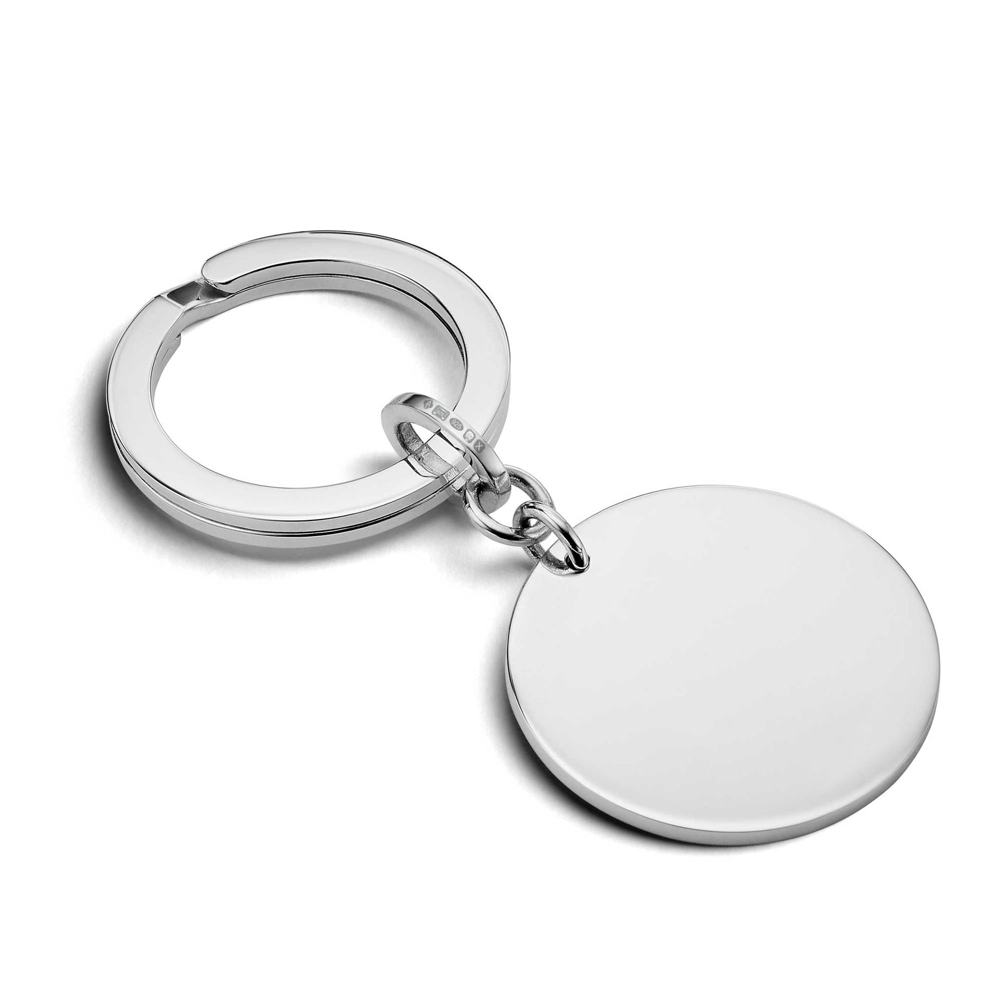 最高の基準で作られたこのスターリングシルバーの Asprey ディスク キー リングは、両面に彫刻可能な表面があり、Asprey の細部へのこだわりと実用性を兼ね備えています。意味のあるギフトとしてカスタマイズするのに最適です。