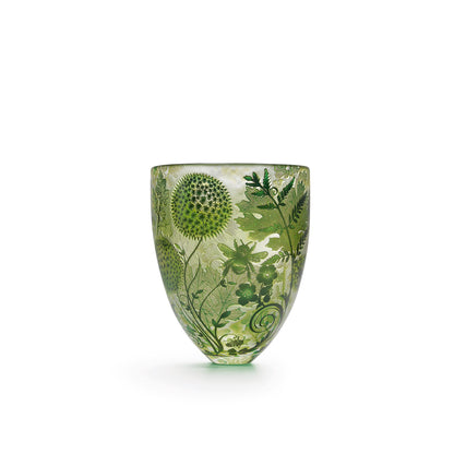 フォーシーズンズコレクションの一つであるこの花瓶は、その鮮やかな緑の色合いで、イギリスの春の田園地帯の活気あふれるエッセンスを体現し、長い冬の後の自然の目覚めを象徴しています。それぞれの花瓶には、繊細なタンポポ、しなやかなワラビ、優美な桜など、イギリスを象徴する植物が、愛らしいマルハナバチとともに彫刻されています。