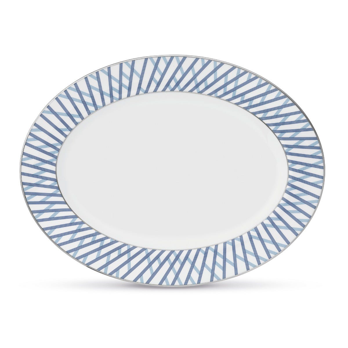 象徴的なグラフィック ブルー コレクションの一部であり、上質な英国製ボーン チャイナで作られたこの楕円形の大皿で、ダイニング体験をさらに高めましょう。このコレクションは、アスプレイの家のモチーフからインスピレーションを得た、モダニズム的な壊れたクロスハッチのデザインと、手作業で仕上げられたプラチナのエッジが特徴です。