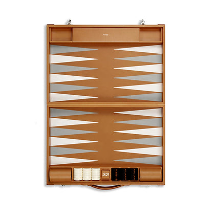 ハノーバー バックギャモン セットは、プロ プレーヤーからレクリエーションや初心者プレーヤーまで、あらゆるレベルのプレイに合うように選択された、慎重に検討された素材の組み合わせです。サドルレザーの外装ケースは、ステッチラインと光沢のあるエッジを特徴としています。競技場の滑らかなラムスキンはプレーのスピードを考慮して特別に選ばれ、ポイントには繊細なカットと象嵌が施されています。革の上を転がる角丸のダイスは、カジノ品質の精密なダイスです。樹脂のストーン (またはカウンター) は競技フィールド上を素早く移動し、プレーしていないときは、革製のダイス カップやダブリング キューブと並んで革張りのコンパートメントに保管されます。ケースはパラジウム仕上げのキーロックで開閉します。ハノーバー バックギャモンは 3 つのサイズがあり、ご自宅に飾ったり、思い出に残るギフトにすることができます。