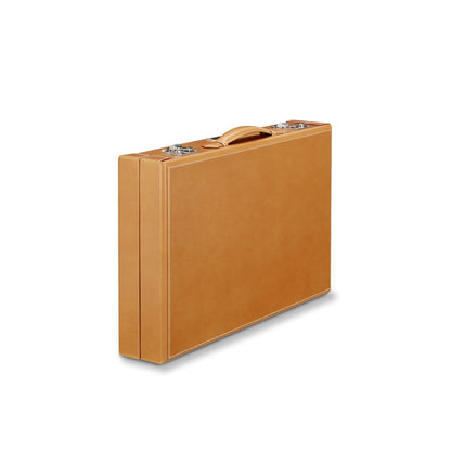 Hanover バックギャモン セットは、プロのプレーヤーからレクリエーションや初心者のプレーヤーまで、あらゆるレベルのプレーヤーに合うように厳選された素材の組み合わせです。サドル レザーの外装ケースは、特徴的なステッチ ラインと光沢のあるエッジが特徴です。プレイ フィールドの滑らかなラムスキンは、プレイのスピードを考慮して特別に選ばれており、ポイントは精巧にカットされ、象嵌されています。革の上を転がすための角が丸いサイコロは、カジノ品質の精密サイコロです。樹脂製の石 (またはカウンター) はプレイ フィールドを素早く移動し、プレイしていないときは、革製のサイコロ カップとダブリング キューブの横にある革張りのコンパートメントに保管されます。ケースはパラジウム仕上げのキー ロックで閉じます。3 つのサイズがある Hanover バックギャモンは、ご自宅を飾ったり、思い出に残るギフトになります。