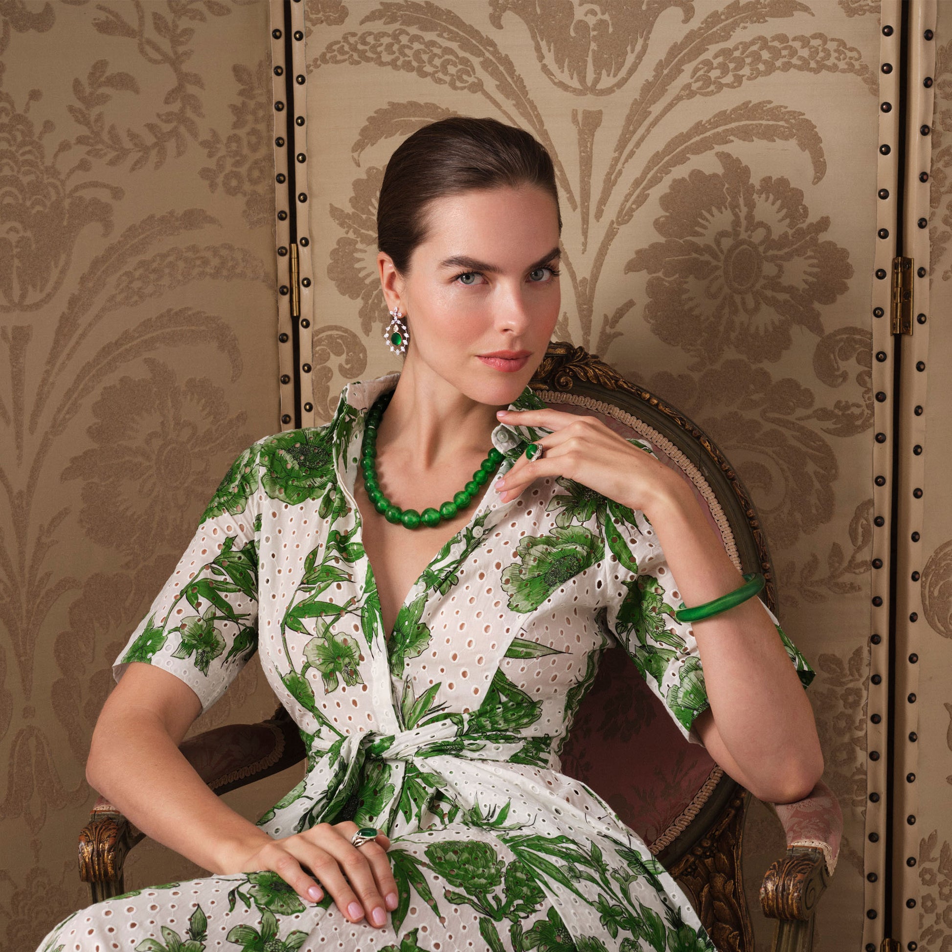 この洗練されたバングルは、比類なき透明感と豊かなグリーンの色合いを持つ鮮やかなインペリアル・ジェダイトを、滑らかで優雅なフォルムに丹念に彫刻しています。祝福と幸福というコンセプトにインスピレーションを得たこのデザインは、静寂とポジティブなエネルギーを体現しています。約498カラットのこのバングルは、インペリアル・ジェダイトの自然な美しさを際立たせると同時に、アスプレイの宝石芸術における卓越した技巧と時代を超越したデザインを体現しています。