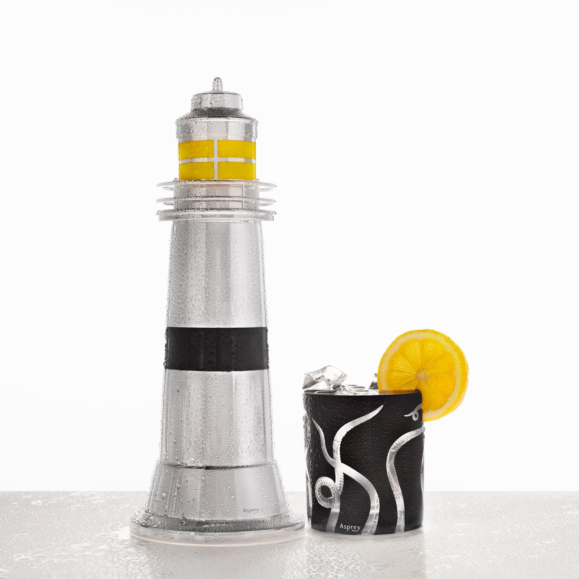 Asprey のワークショップ内でデザインされ、手作りされたこのシェーカーは、彼らの献身的な姿勢の証です。実用的なストレーナー、頑丈なベースセクション、蓋の 3 つの部分からなるデザインです。英国の灯台に敬意を表したこの特別な Asprey アイテムでバーやご自宅をグレードアップしましょう。