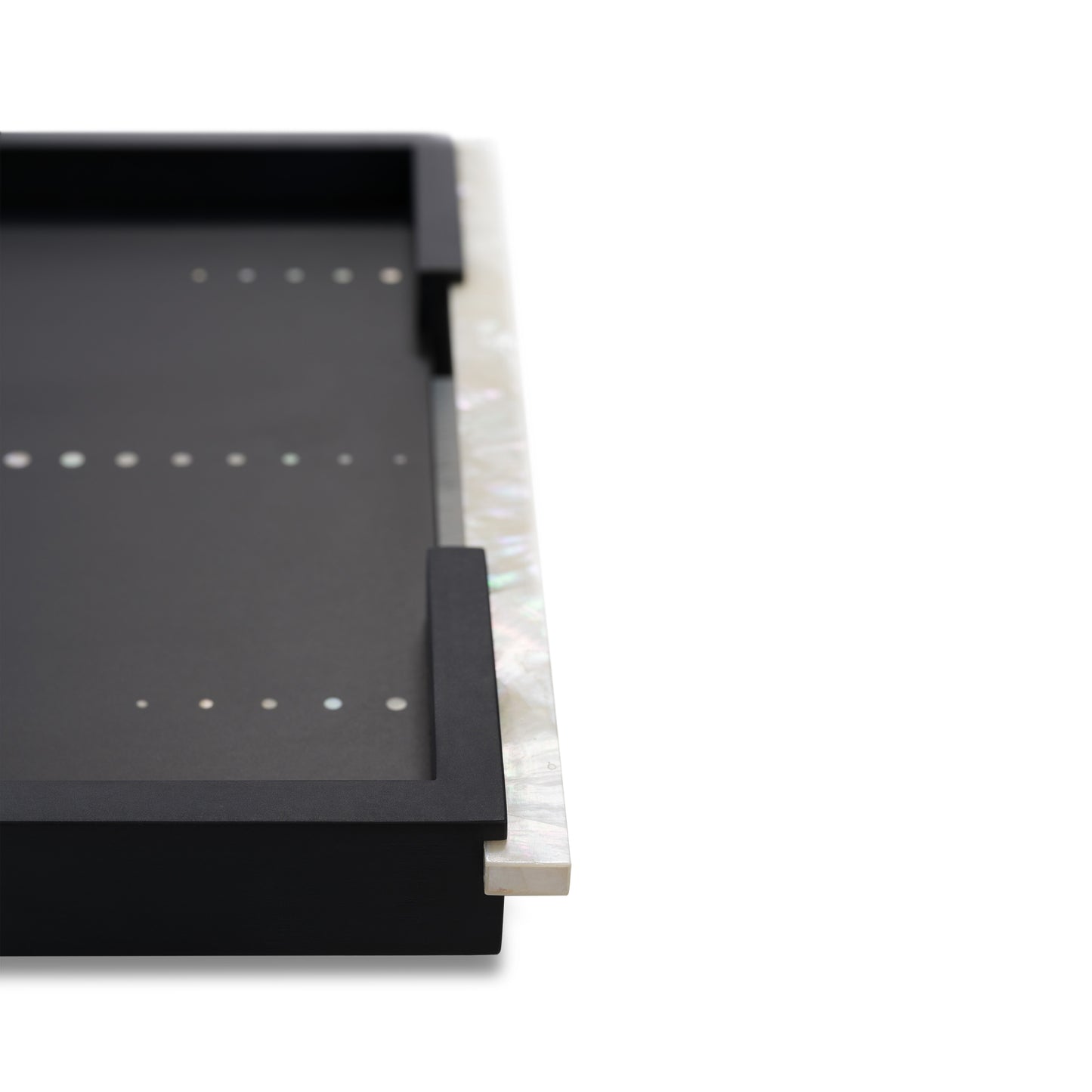 Asprey London のために特別に作られた、黒いボリバル材のレイン トレイは、上昇または下降する真珠の滴とハンドルで飾られ、溶ける氷河を思い出させます。手塗りのマットラッカーで仕上げられたこのトレイは 8 個の限定版で、日本のギフト包装芸術である風呂敷を彷彿とさせるユニークな布製スリーブに入れて提供されます。