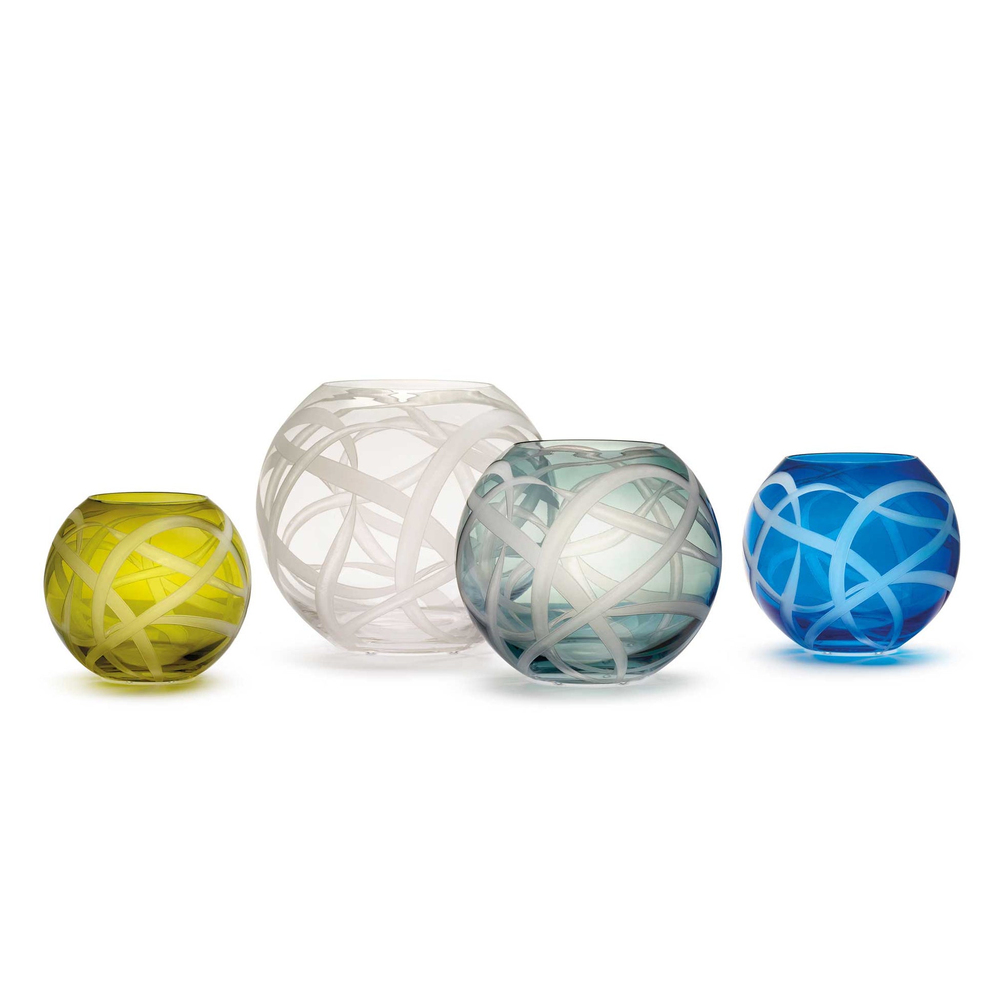 流れるようなリボンモチーフを特徴とするユニークな Asprey 花瓶デザイン シリーズの 1 つ。ボヘミアのマスタークリスタルガラス職人によって私たちのために作られたこれらの花瓶は、要求の高いダイヤモンドホイール彫刻法を使用して手彫りされており、実行するには何年もの集中的な訓練が必要です。花瓶は鉛フリーのクリスタルから口吹きで作られています。