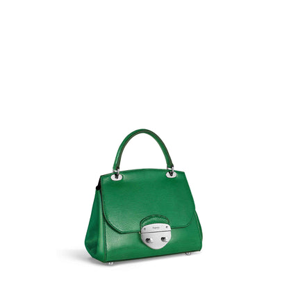 Made from exquisite malachite green lizard, the Belle Mini Handbag exudes timeless charm while reimagining a classic Asprey design. Its soft construction and elegant styling make it the perfect choice for day or business use. The exclusive Asprey clasp and gently curved top-line add a distinctive touch to its design.