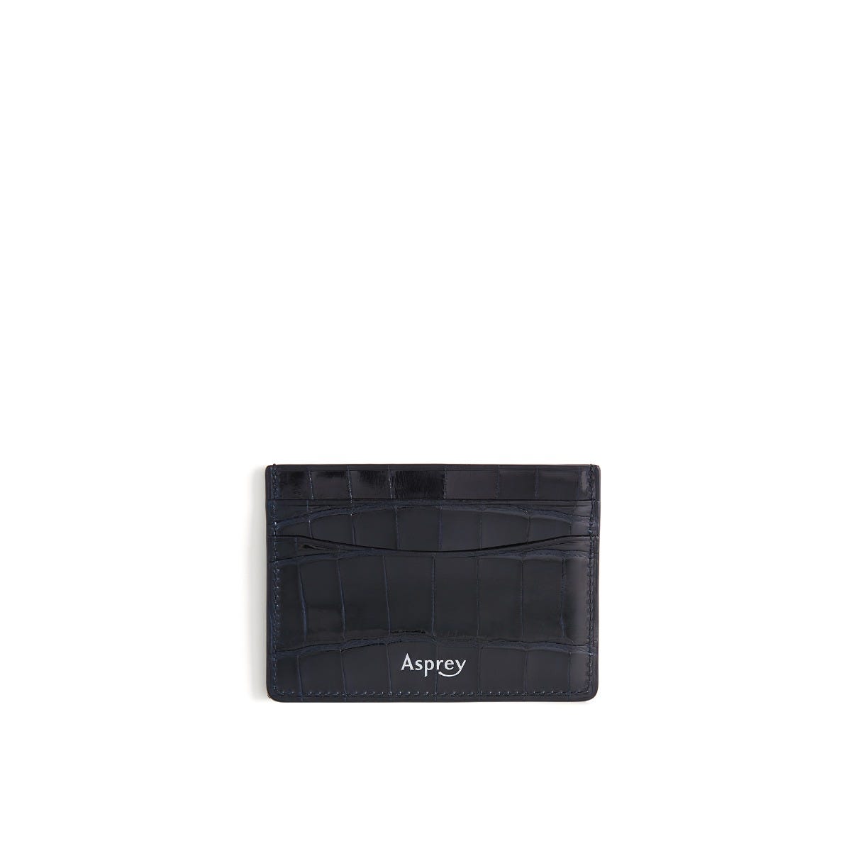 Polished crocodile skin front & back with silk lining inside the 4 credit card pockets. Single top pocket full leather lined. Fine stitching and veined edge detail. Discreet Asprey logo embossed on the interior.