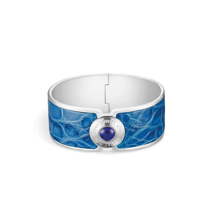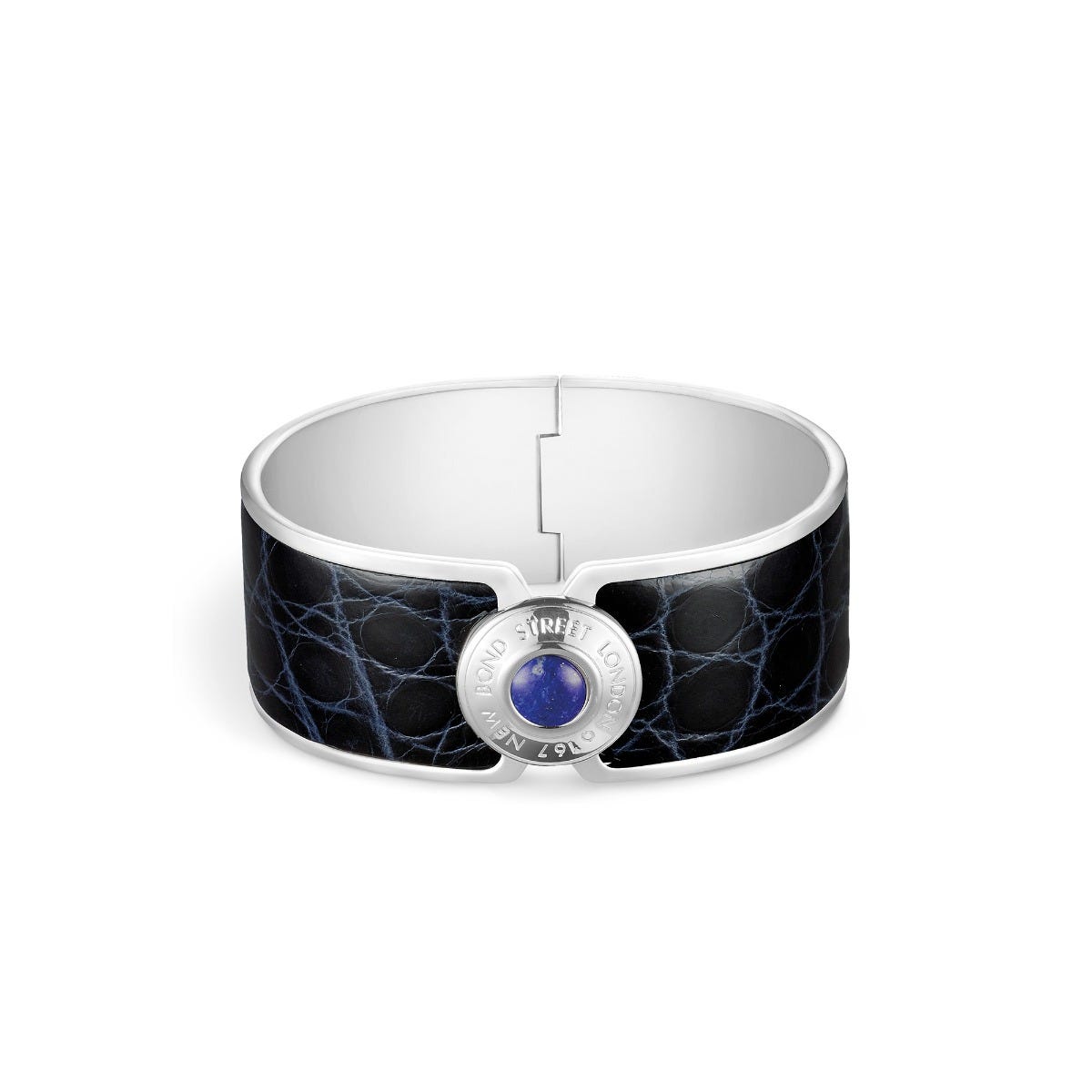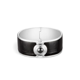 Bond Street Wide Button Cuff in Crocodile with Palladium Finish