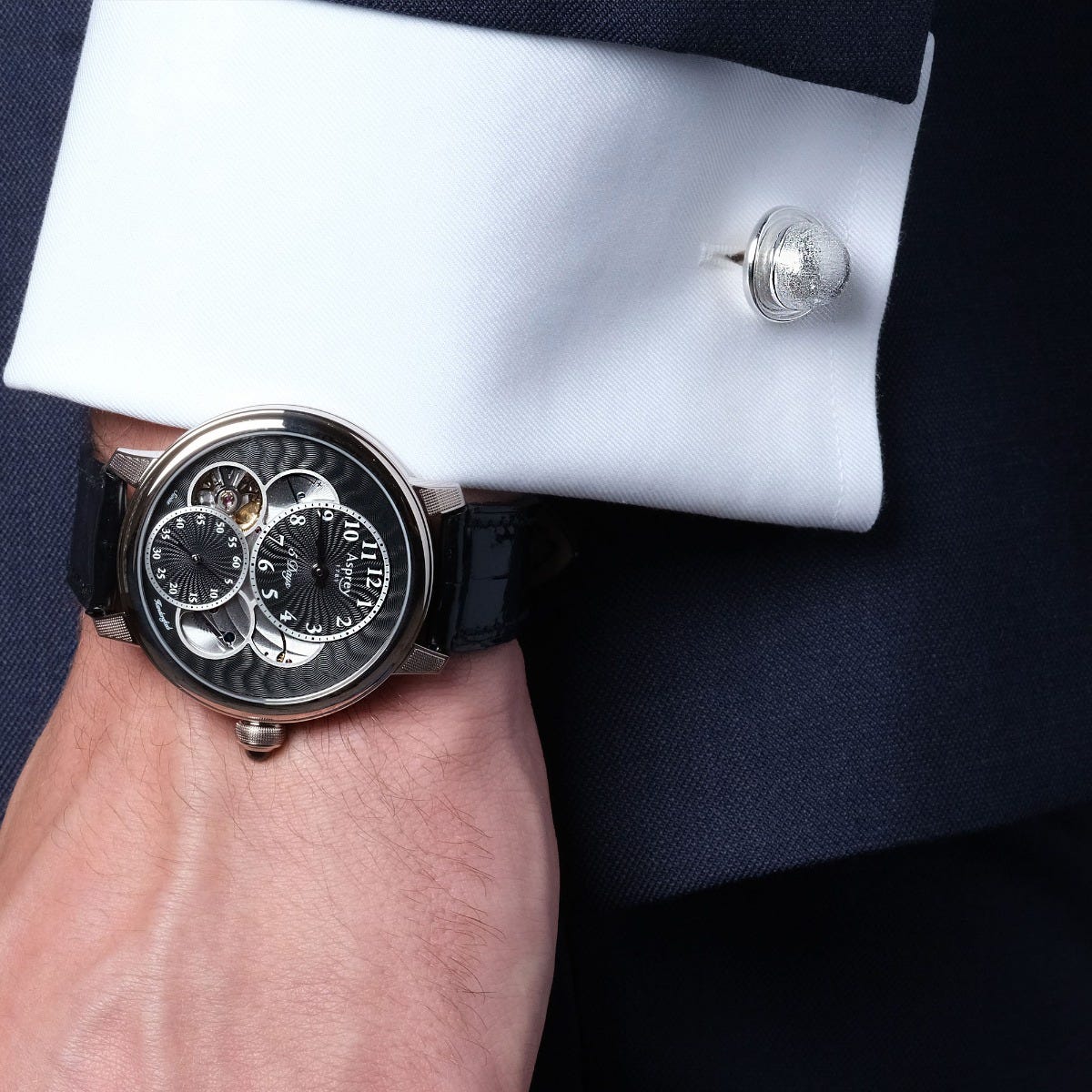 The Asprey Bowler Hat Cufflinks are crafted in hallmarked sterling silver, drawing inspiration from the iconic British bowler hat. The design features the classic round-domed silhouette with subtle texturing, buffed and brushed to create a refined finish. A distinctive and playful nod to heritage tailoring, these cufflinks add character while remaining polished and understated.