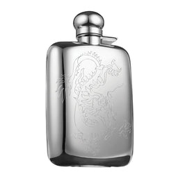 Asprey's sterling silver Hip Flask is an excellent travel and sport event accessory for those on the go. With an engraved dragon design representing the Chinese Zodiac, this flask exudes refinement. It boasts rounded corners and discreetly showcases the Asprey logo and hallmark. Noteworthy for its hinged screw cap, designed to never be misplaced. This flask is an ideal canvas for personalisation, allowing you to add a name, monogram, date, or heartfelt message. Rooted in 18th-century design, its concave shape is tailored to fit comfortably in a hip pocket, ensuring quick access to your preferred drink during outdoor pursuits. Impeccably crafted and timeless, it stands as a symbol of quality craftsmanship.