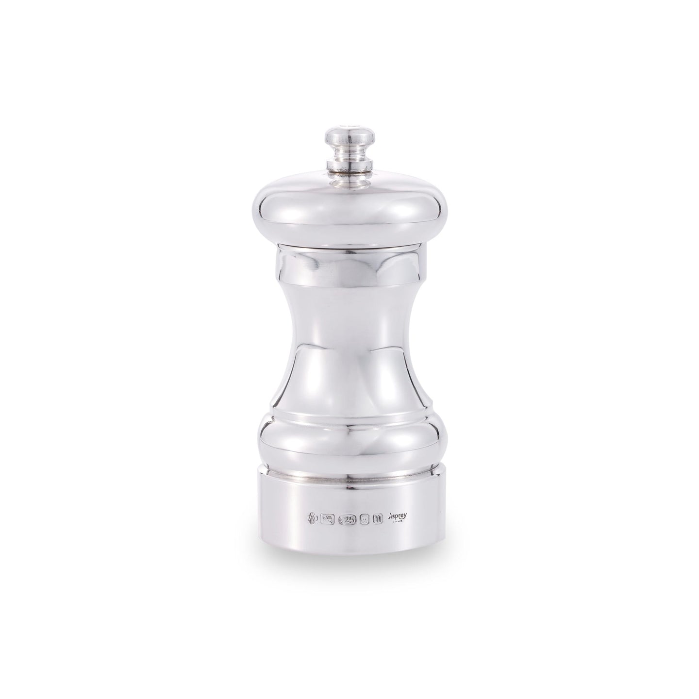 The Asprey Classic Salt Mill in sterling silver and ebony brings together refined materials and fine craftsmanship for the discerning host. The hall-marked sterling silver body delivers a polished, authoritative presence while the ebony wood base adds depth, contrast and tactile warmth. Fitted with a high-quality ceramic grinding mechanism, the mill allows adjustable settings from fine to coarse grind, making it practical for both everyday use and elevated dining occasions.